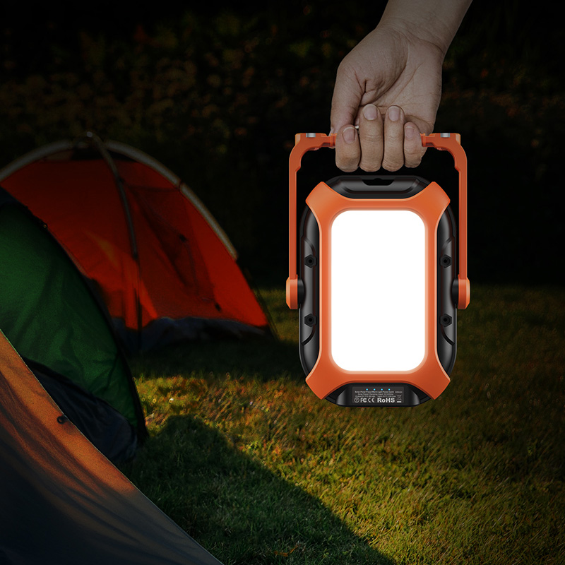 【600LM & Light Modes】600Lumens LED solar camping light.Rechargeable camp light has different modes: red light,flood light,warm light and flashing.You can switch between each mode by pressing the ON/OFF button.