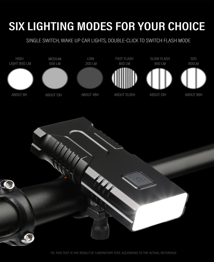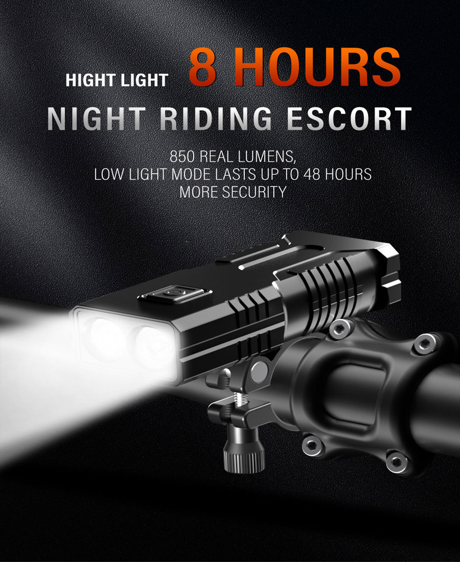 【High Lumens Output】Powerful LED chips used for bicycle front light emits max 850 lumens brightness that is ultra bright at night,lighting up your riding path with wide view within 1000 feet range.