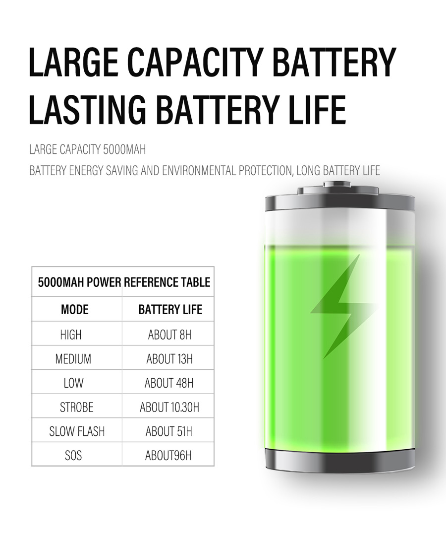 | Lighting Mode | High/Middle/Low/Flashing/SOS |