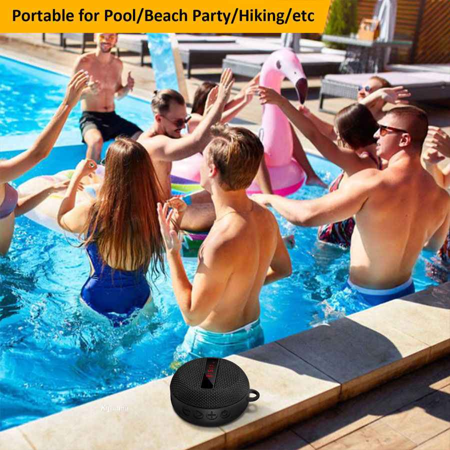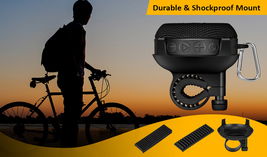 【Loud Sound&Deep Bass】The sound of this portable bluetooth speaker against its small size is loud and powerful enough for you to hear it over the wind whilst biking.Bass is awful when volume tunes loud.