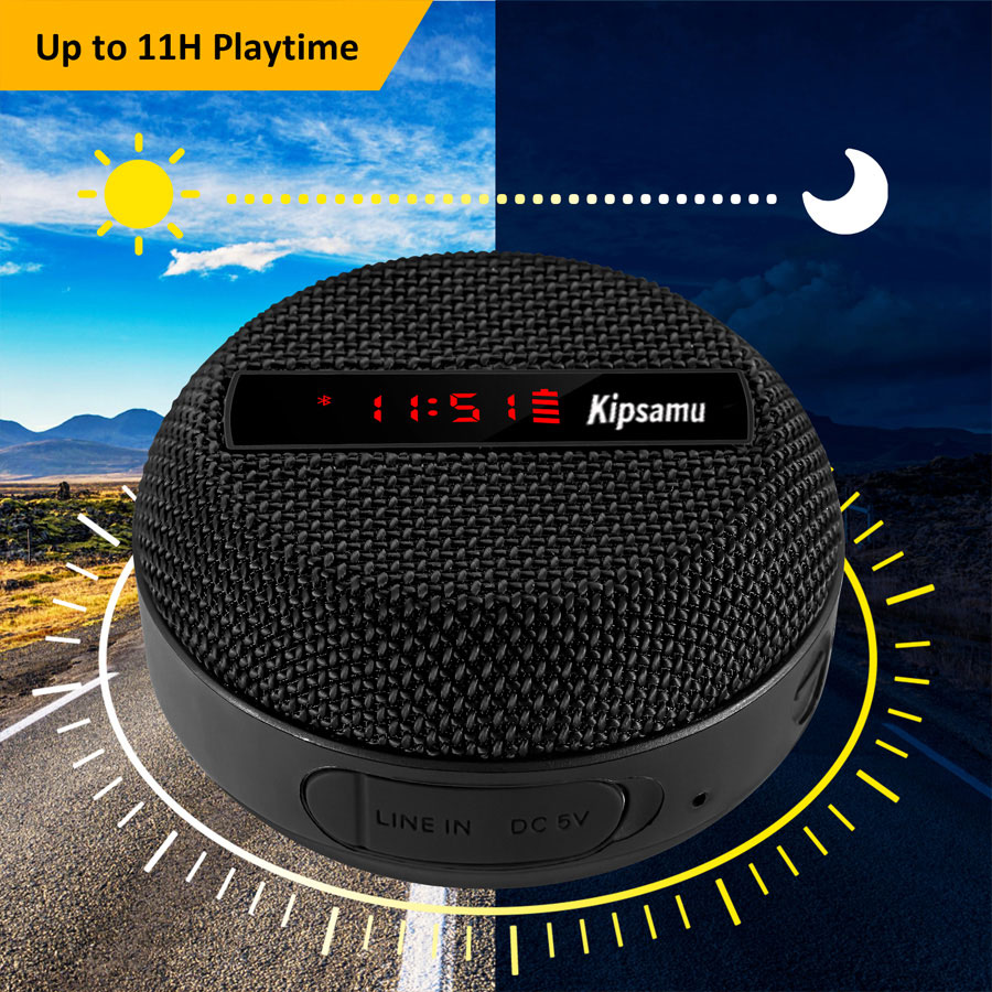 【11 Hours Playtime】Built-in rechargeable battery supports up to 11 hours playing time at 60% volume,7 hours at full volume and effortlessly charges the wireless speaker by USB port and cable provided.