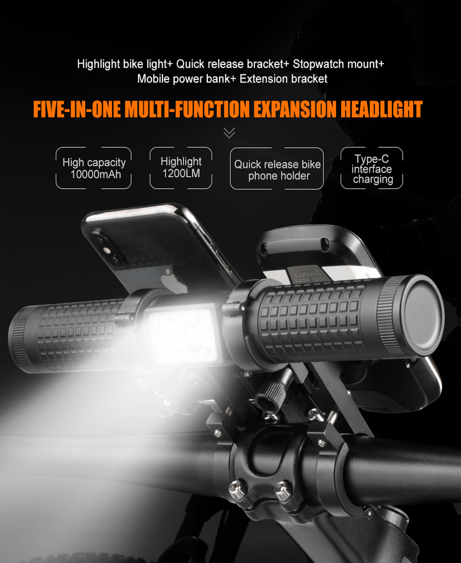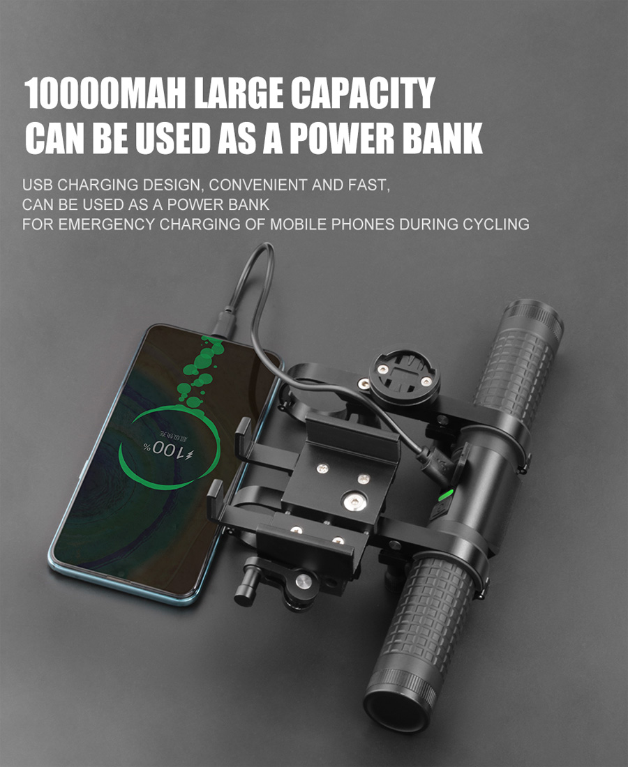 【More Than a Bike Light】With rechargeable built-in 10000mAh battery,the front bike light enables you to use it as power bank for quickly charging your mobile phone.
