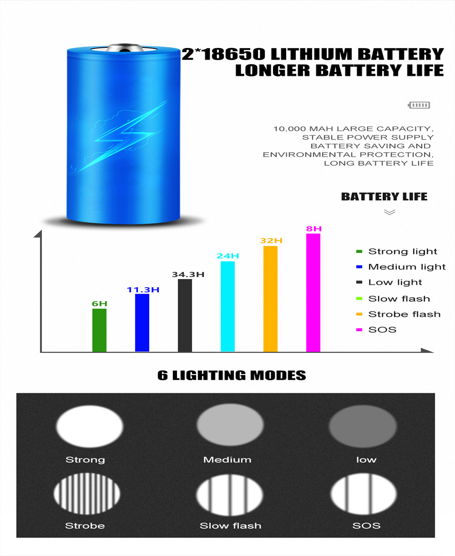 | Lighting Mode | High/Middle/Low/Flashing/SOS |