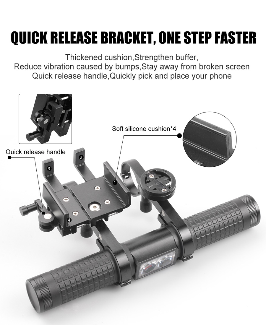 【Handlebar Extention with Battery】The extended bracket breaks the constraints of the handlebar space and help you fix more riding devices,such as cell phone,stopwatch,speaker,etc.