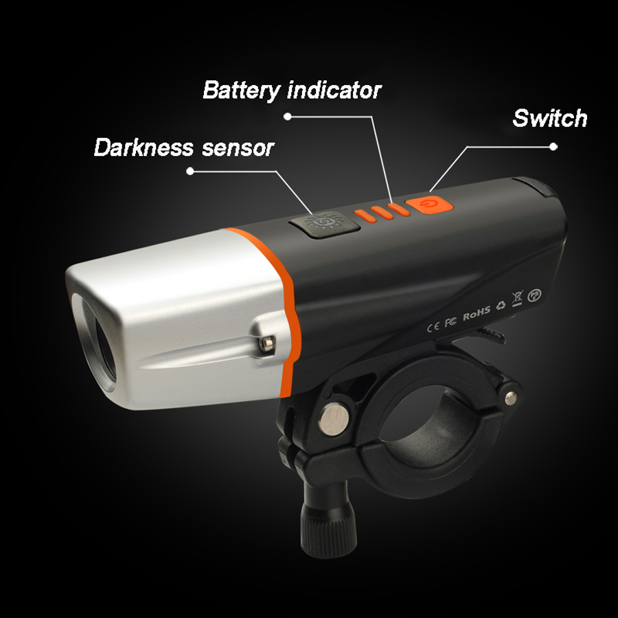 【Darkness Sensor】With built-in sensor in the bicycle headlight,the lamp automatically turns off while nature brightness is not enough for cycling.