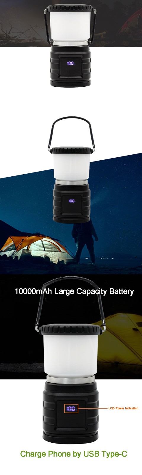 【Long Battery Life】 With 8000mAh battery capacity,this portable lantern flashlight can last up to 10 hours,perfect for power outage,earthquake,survival kit and other outdoor and indoor usages.