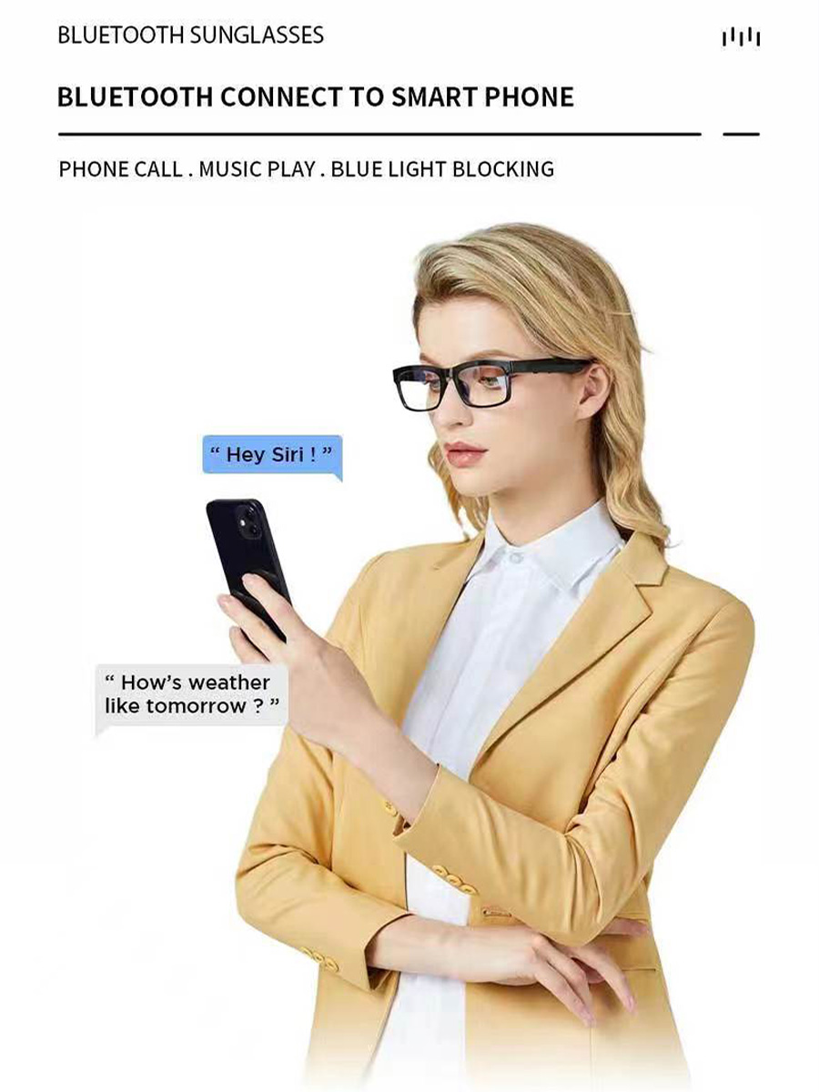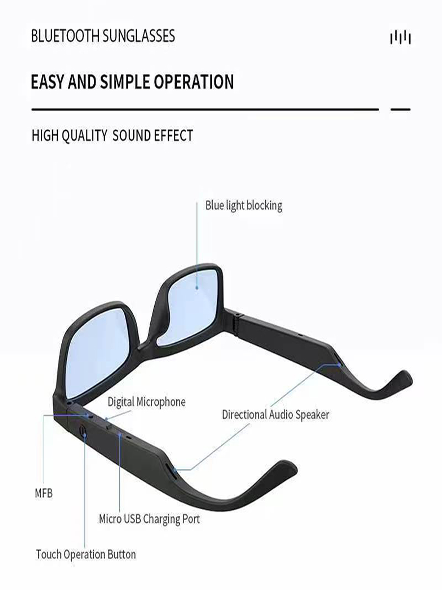 【Open-Ear Sound Experience】The smart buletooth glasses are designed with an open-ear speaker,offering immersive sound experience.Enjoy your favorite music while maintaining awareness of your surroundings.