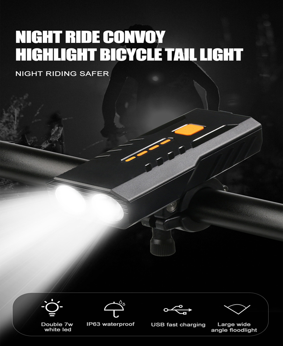 【Rechargeable & Power Bank】With the built-in rechargeable battery,the bike front light can also serve as a power bank for smartphone or mobile devices in an emergency.