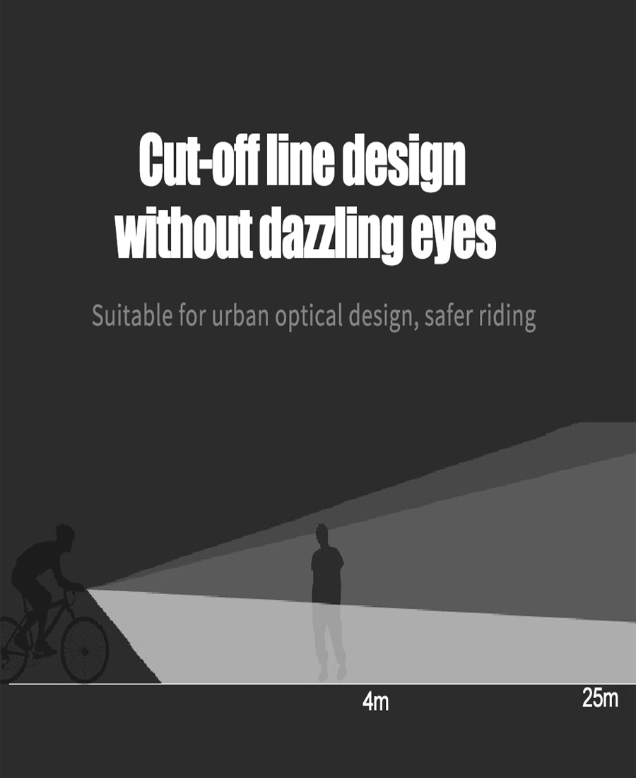 【Anti-Glare Design】With the cut-off line design of lens,the bicycle light is allowed to protect your eyes without dazzling while biking.