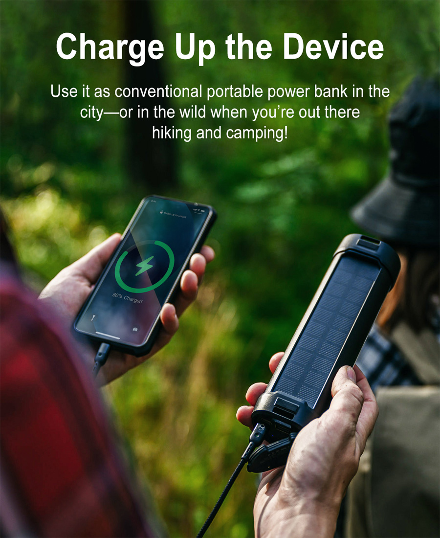 【Rechargeable & Power Bank】With the built-in rechargeable battery,the solar camping light can also serve as a power bank for smartphone or mobile devices in an emergency.